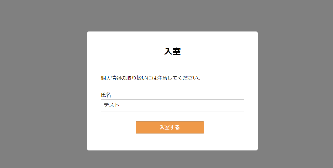 ※URLへアクセスした際に表示される画面。名前を入力して入室をします