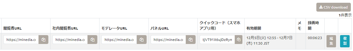 - 社内閲覧者URL: 実査のサポートをする方など閲覧者URLよりも少し機能がリッチになったURLです。
